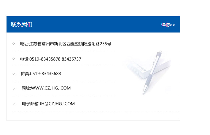 地址:常州市新北區(qū)友邦商務大廈1幢16、17層  電話:0519-85101652  傳真:0519-85112595  郵編:213022  網(wǎng)址:www_cz-jiayue_cn.dgwlbyfz.com  郵箱:xiajifengaa@163.com